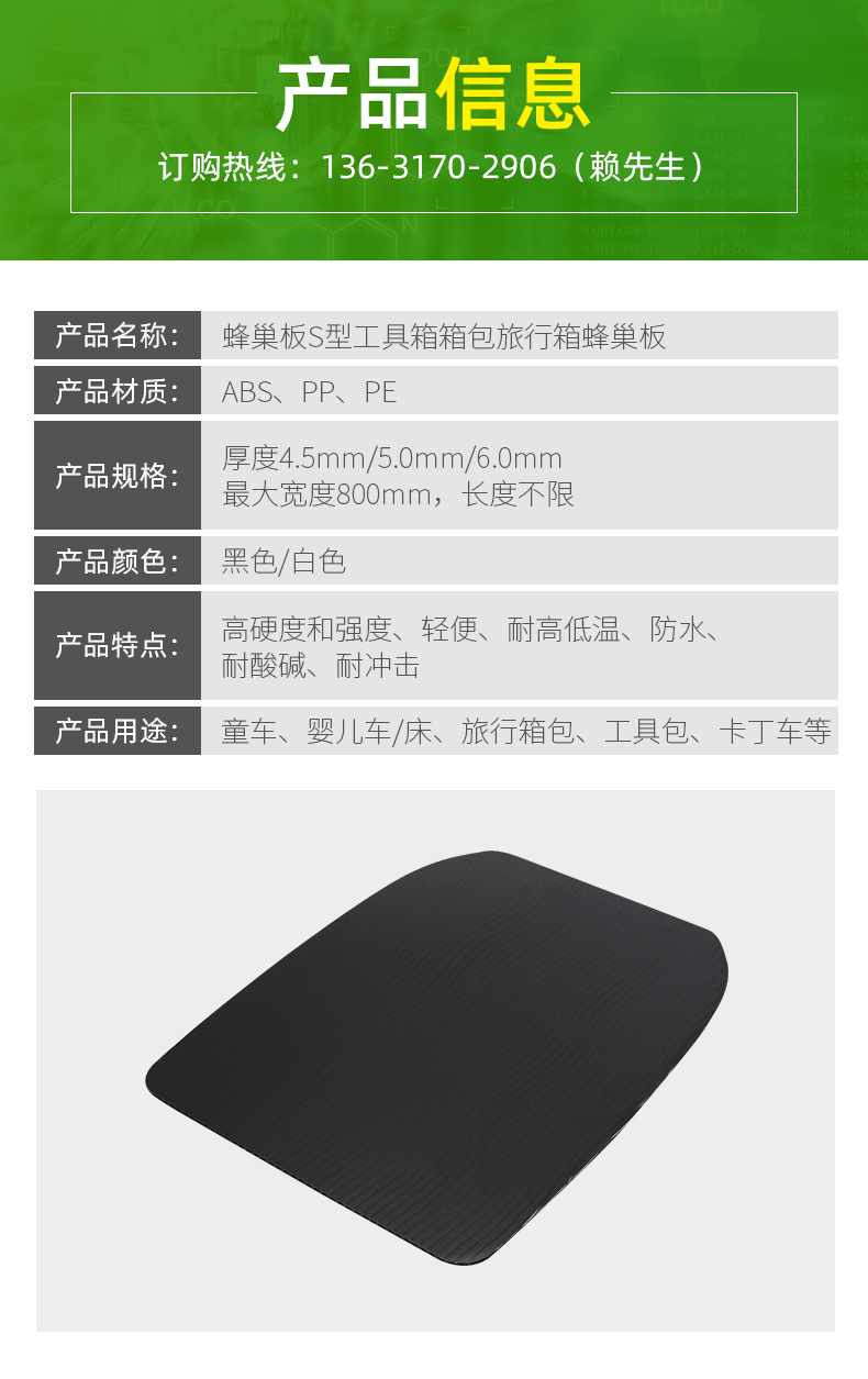 名称:蜂巢板S型工具箱箱包旅行箱蜂巢板