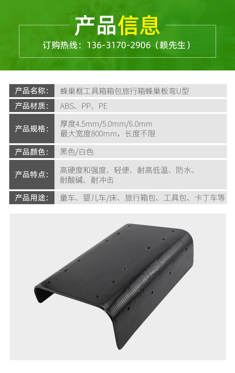 名称:蜂巢板工具箱箱包旅行箱蜂巢板弯U型