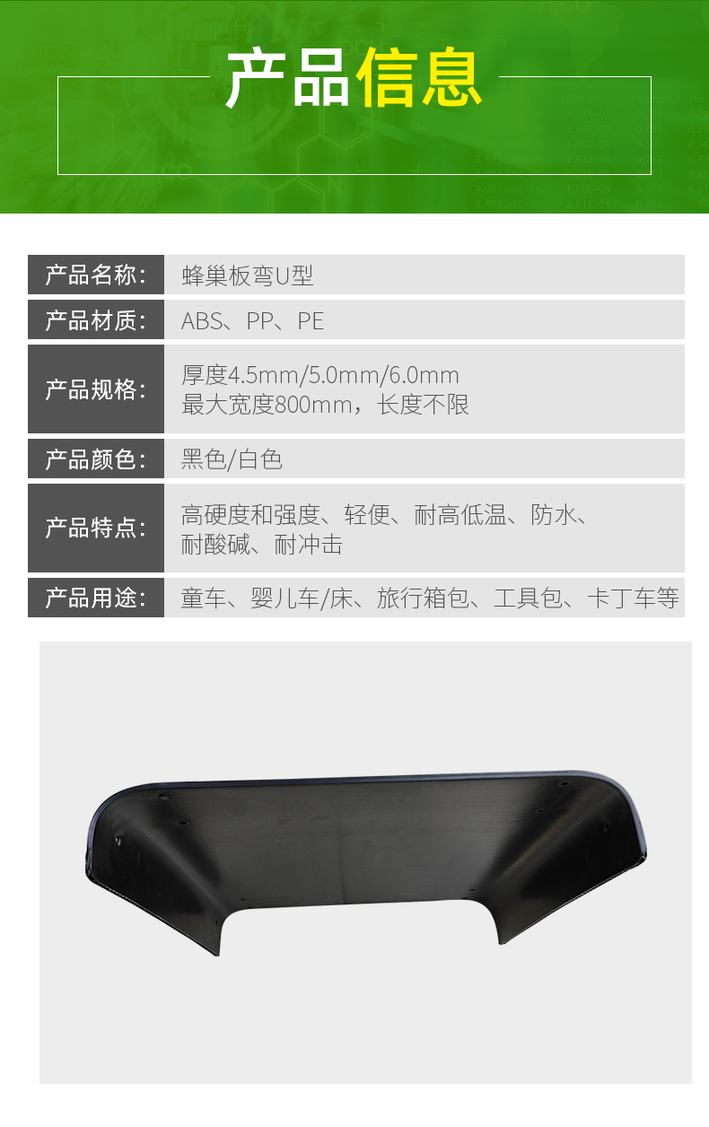 名称:蜂巢板弯U型用于箱包底部托盘配万向轮