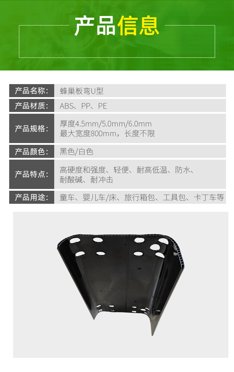 名称:蜂巢板弯U型冲孔切角用于箱包底部